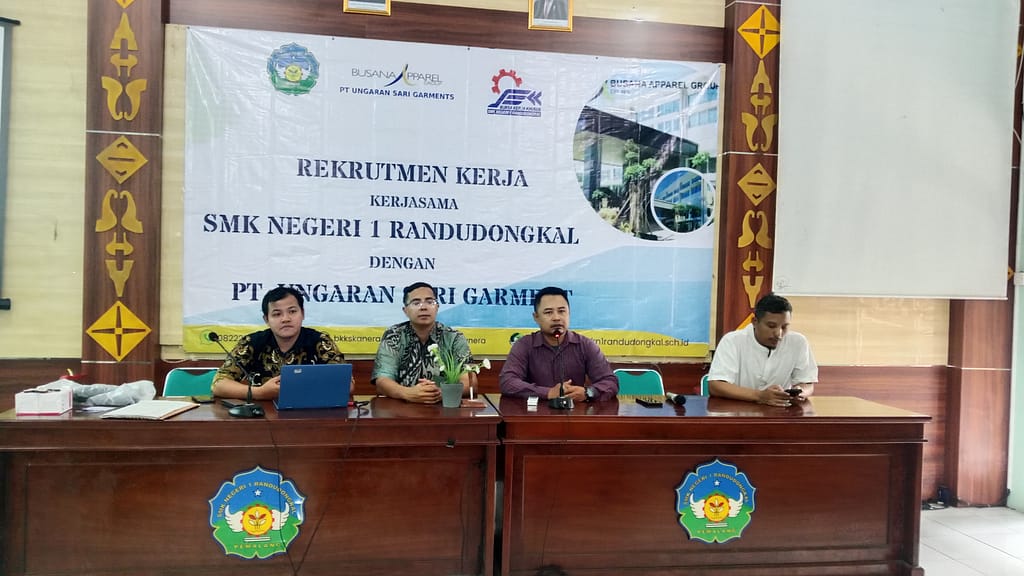 Randudongkal, 22 Maret 2025 – Bursa Kerja Khusus (BKK) SMK Negeri 1 Randudongkal kembali mengadakan rekrutmen kerja khusus bagi siswa kelas XII dan alumni. Kegiatan ini merupakan hasil kerja sama antara BKK SMK Negeri 1 Randudongkal dan PT. Ungaran Sari Garment, sebuah perusahaan garmen terkemuka di Indonesia yang bergerak dalam bidang produksi pakaian berkualitas tinggi untuk pasar domestik maupun internasional.